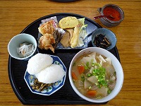 ここで“だんご汁定食” を食べるとこの温泉に入ることができます