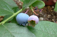 春にはたくさんの花を咲かせたブルーベリーですが 実になったのはコノ2粒だけ…