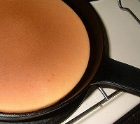 最近、パンケーキ(ホットケーキ)がマイブーム 鉄のフライパンはテフロン加工のモノよりきれいに焼ける! おもしろいのでついつい作りすぎ冷凍することも… (^o^)ゞ