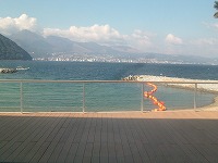 お料理の向こうに別府湾と高崎山、別府の湯けむりが見えます。