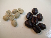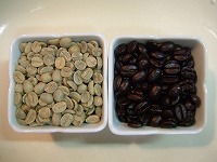 左が生豆、右が焙煎後の豆